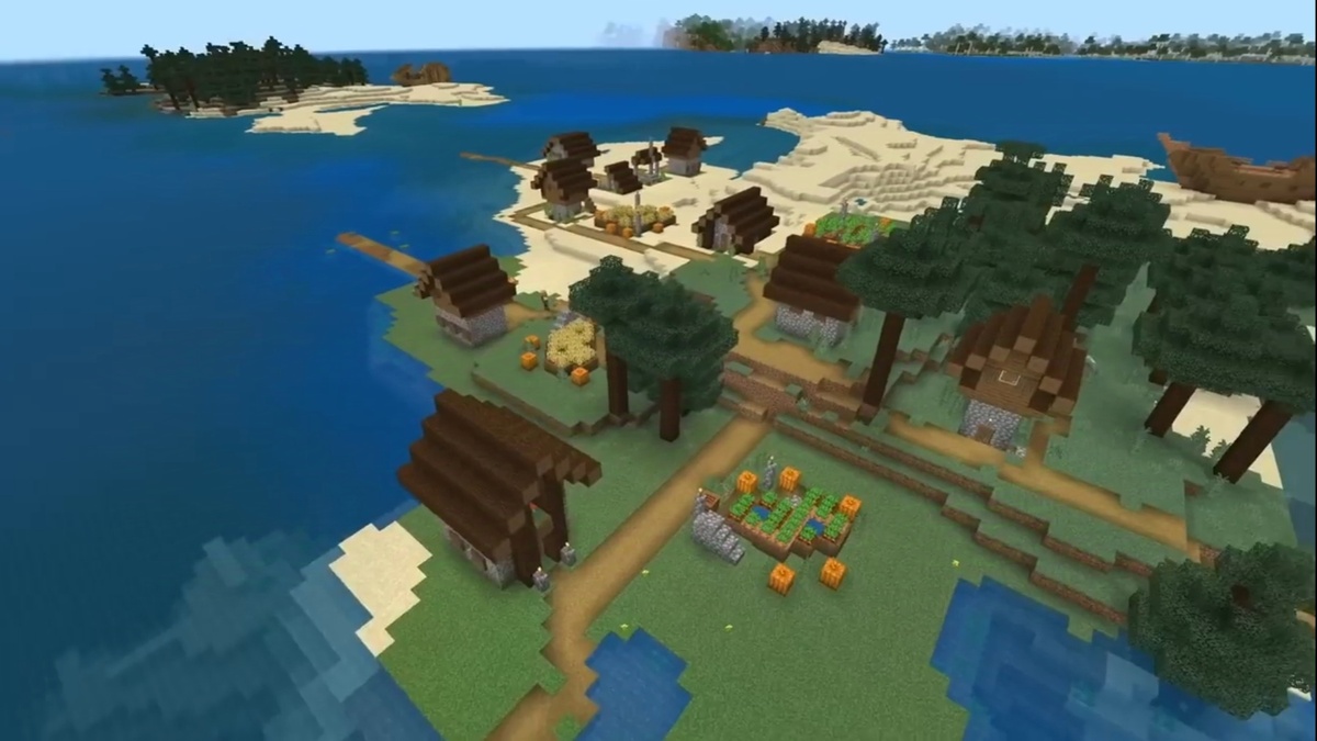 Спаун в равнинной деревне, возле океана. Если поплыть в океан, то там будет таëжная деревня и 2 корабля. Под деревней находится портал края.