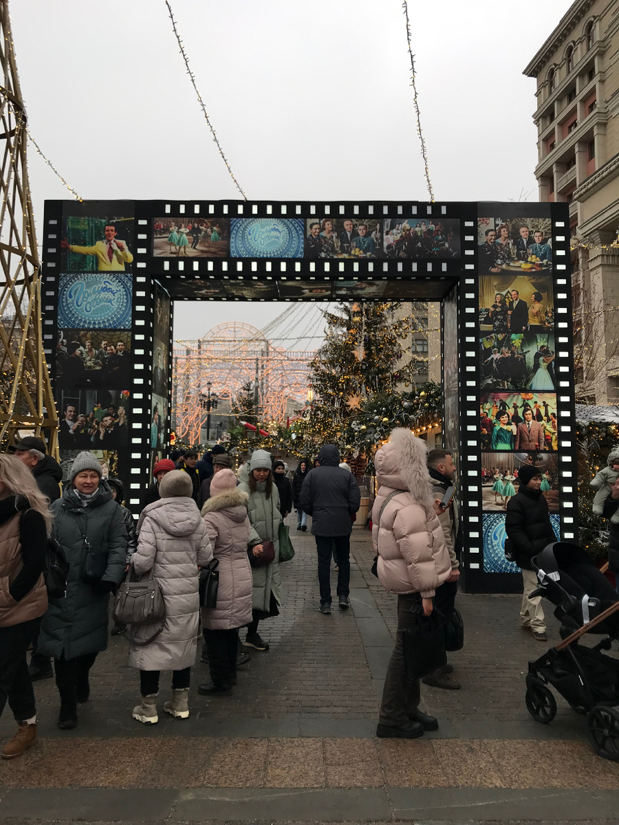 В этом году Москва украшена очень красиво 😍. Везде шары, инсталляции, фотозоны. Прошлась я по Манежной площади, где проходит фестиваль Путешествие в Рождество. Очень люблю этот фестиваль и стараюсь каждый год бывает на его центральных площадках. В этом году тематика оформления советские фильмы. Лучше идти в будни с утра, народу мало и можно спокойно всё рассмотреть. Ещё мне понравились фото зоны с кадрами из фильмов. Узнали кадр из фильма? Мне кажется, что задумка очень неплохая. А я хочу поделать вам удачи и счастья в Новом году!