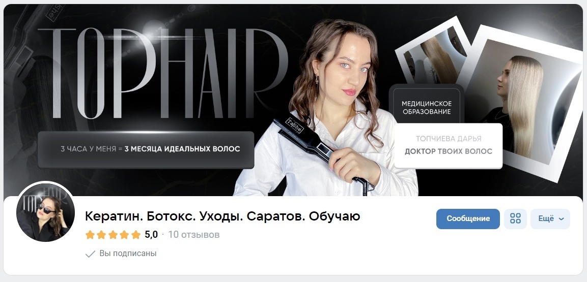 Кейс VK реклама: 42 заявок по 286 рублей на услуги кератинового выпрямления волос в Саратове