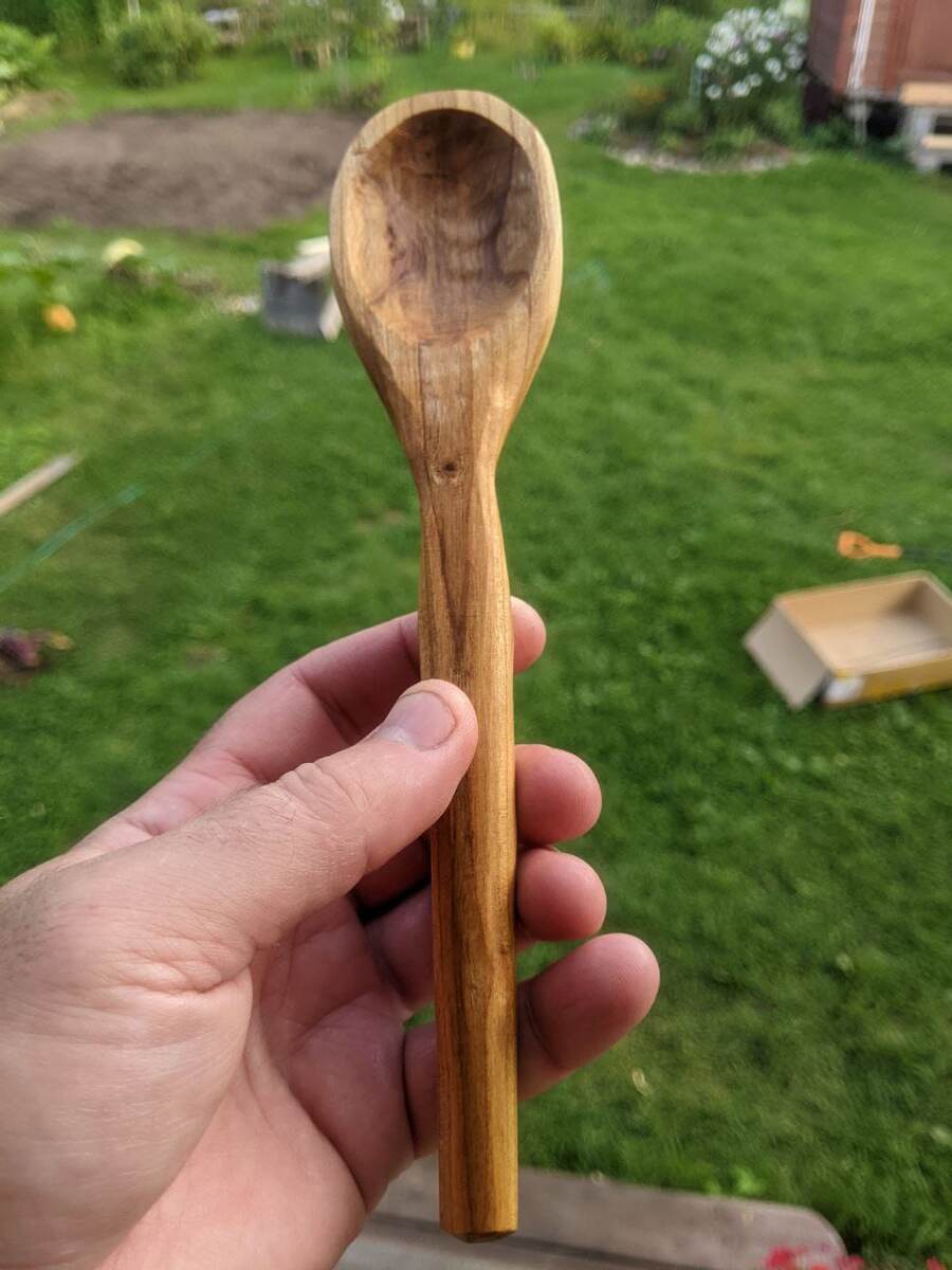 И вот она моя первая ложка. Была взята ветка обычной садовой вишни.