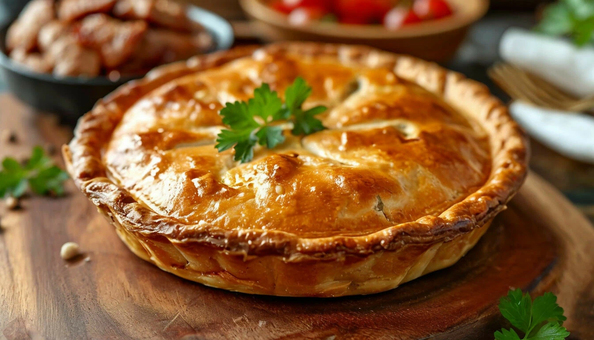 Ингредиенты: · мука – 600 гр.; · масло сливочное – 200 гр.; · желток – 3 шт.; · молоко – 1 ст.; · дрожжи (живые) – 25 гр.; · соль – 1 ч.л. · блинчики не сладкие для прослойки; · яйцо для обмазки. Для начинки: · говядина отварная – 300 гр.; · яйца варёные – 4 шт.; · лук – 4 шт.; · печень – 300 гр.; · шампиньоны – 300 гр. Приготовление: Из половины муки, молока, дрожжей замесить тесто, дать подойти. Далее добавить оставшуюся муку, масло, желтки и соль, снова дать подойти и разделывать на пироги. Подготовить начинку: половину лука обжарить с мелко порубленной отварной говядиной. Вторую половину лука обжарить с мелко рубленной печенью, посолить, поперчить по вкусу. Шампиньоны, порезанные мелко, обжарить на масле, смешать с мелко рубленными яйцами. Тесто раскатать тонко, укладывать слоями: говядину, блины, шампиньоны с яйцами, блины, печень. Закрыть пирог, плотно защепить тесто по краям. Яйцо взбить, обмазать им пирог. Выпекать в предварительно разогретой до 180-200°С духовке в течение 25-3
