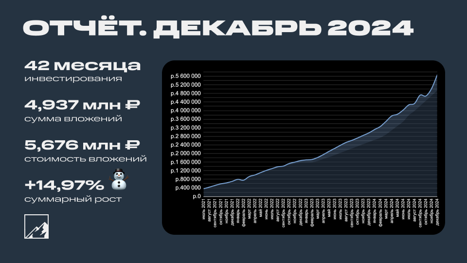 С Новым годом, дамы и господа, желаю вам всего туземунного! 1 января, значит пора доедать оливье и подводить итоги декабря. Ежемесячно я пишу отчёт о том, что произошло с моими инвестициями. Напоминаю: я начал копить на квартиру в Сочи в июле 2021. 42 месяца позади. Погнали!