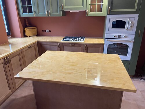 На территории Мезоамерики — историко-культурного региона, охватывавшего территории современных Мексики, Гватемалы, Белиза, Сальвадора, а также части Гондураса, Никарагуа и Коста-Рики, — раньше существовали различные государства. Одним из самых богатых и развитых была Империя ацтеков. Государство ацтеков было известна своим золотом и огромными запасами этого драгоценного металла. Ацтеки добывали золото в больших количествах и активно собирали его в виде дани с покоренных народов. Золото в ацтекской культуре имело не только материальную, но и духовную ценность: этот металл считался даром богов. Оно использовалось для создания оружия, ритуальных предметов, масок, украшений, применялось в оформлении храмов и дворцов. По иронии судьбы богатство ацтеков сыграло ключевую роль в их величии, оно же стало причиной их падения. Обилие золота в столице империи – городе Теночтитлане – поражало воображение, в том числе воображение испанских конкистадоров. Завоеватели видели в покорении Империи ацтеков не только военную, но и экономическую выгоду. Не вдаваясь в детали довольно драматических событий 1519–1520 годов, связанных с именем Эрнана Кортеса сотоварищи, отметим, что большая часть золотых сокровищ ацтеков была утрачена: некоторые уникальные ацтекские золотые изделия просто переплавлялись в золото, некоторые тонули во время доставки из Нового Света в Старый. До сих пор ацтекское золото окружено тайнами и легендами. Многие считают, что часть сокровищ спрятана. Пссс, мы, кажется, его нашли и спешим поделиться с вами! Найти его можно в ассортименте акриловых камней Corian! Позвольте представить вам одну из наших работ, для изготовления которой использовался Corian Aztec Gold. Если вы желаете заказать изготовление тех или иных изделий из искусственного акрилового, кварцевого или полиэфирного камня, компания «Каменная Корпорация» с радостью поможет вам с реализацией любого проекта! Также будем рады помочь вам с ремонтом изделий из акриловых камней. Ждем вас на нашем сайте, в офисе или на производстве!