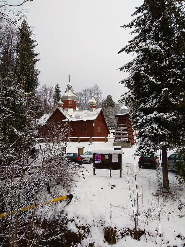 Камянна известна чуть ли не как главный пчеловодческий центр Польши. Собственно, на дегустацию всевозможных медов и их производных нас сюда и возили. Однако для меня главной достопримечательностью Камянной стало не это, а бывшая лемковская церковь, которую удалось рассмотреть вблизи и даже зайти внутрь.