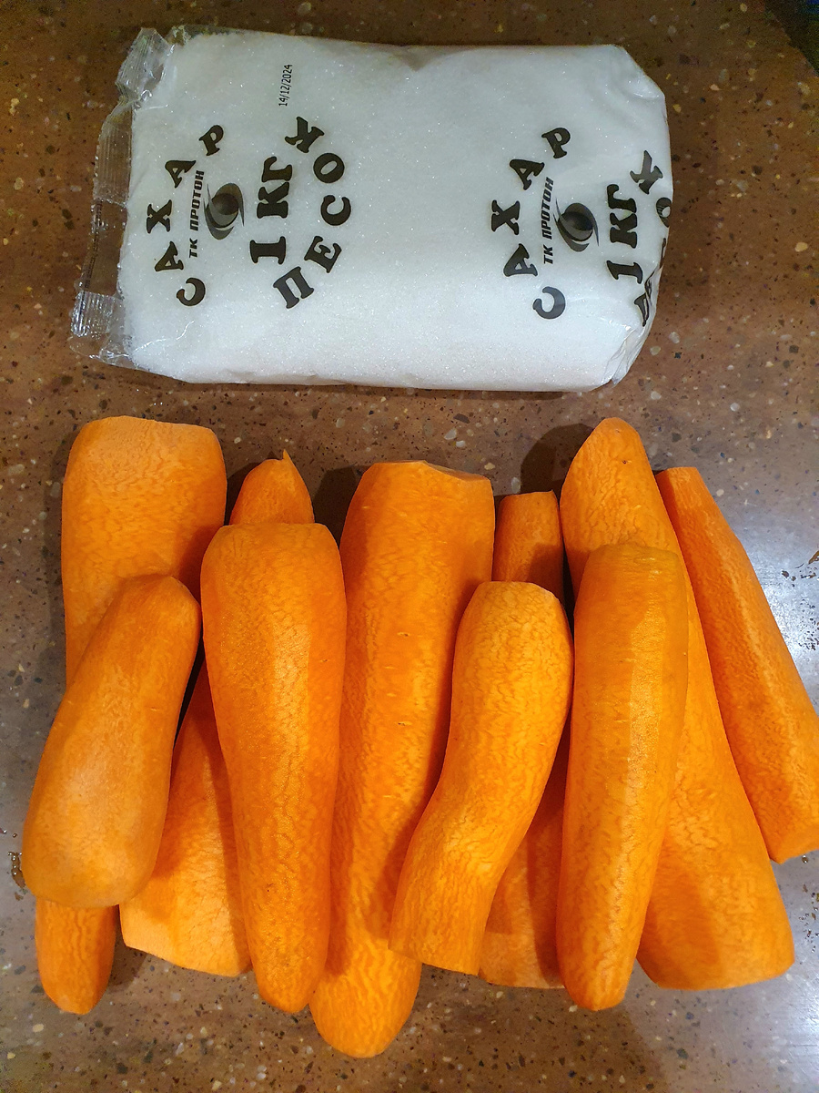 Потребуется 2,5 кг моркови (после очистки останется примерно 2 - 2,2 кг) и 1 кг сахара, электросушилка, кастрюля побольше, деревянная ложка с длинной ручкой, дуршлаг, время, отличное настроение.
