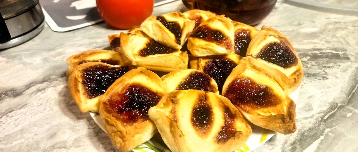 - 500 г слоено-дрожжевого теста (я использую готовое),