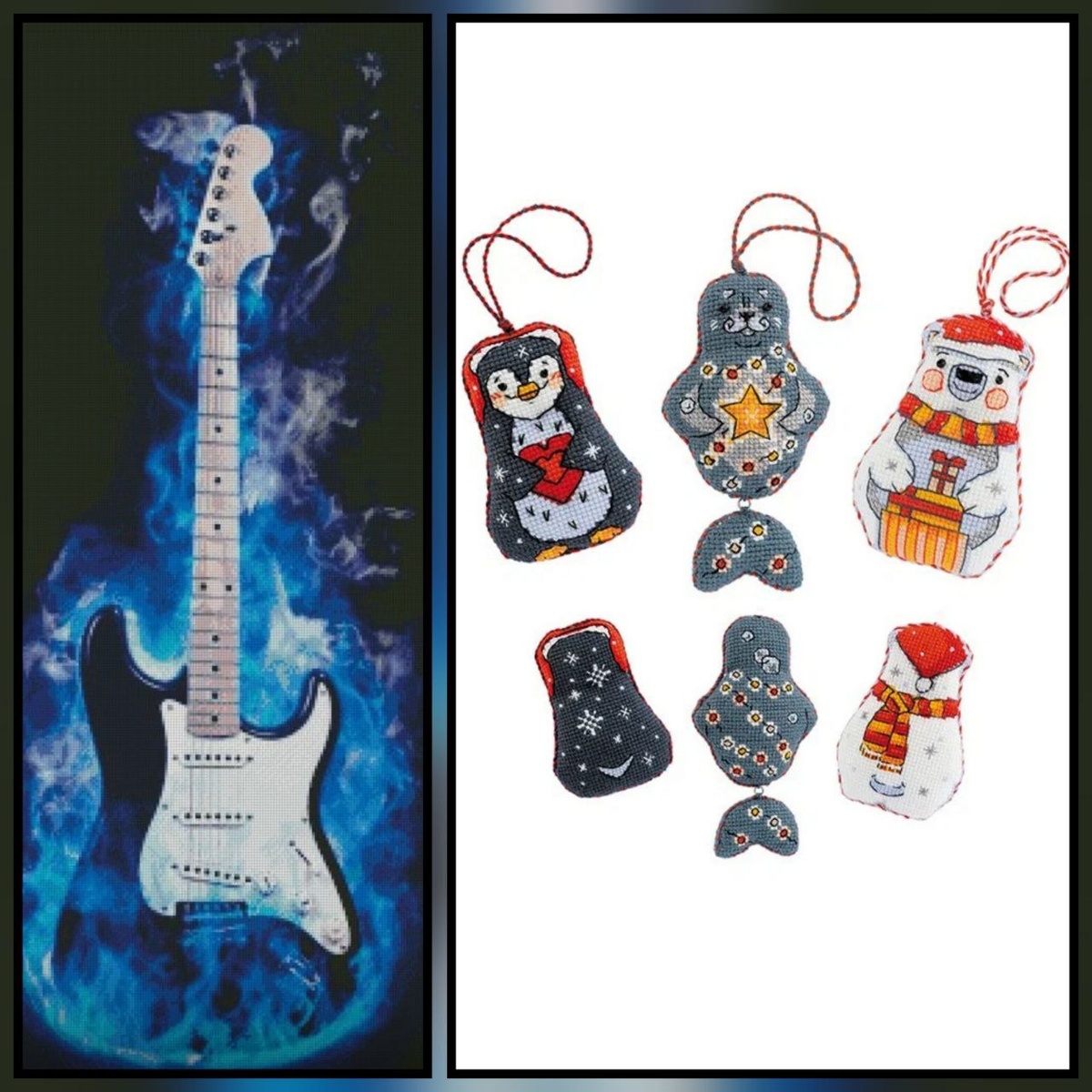 Всем привет. Меня зовут Наташа. Вышивка мое хобби и рада видеть вас на страницах своего вышивального дневник. Друзья на календаре 1 января и я немного задержалась с отчетом за прошлую неделю. Прошу понять и простить, было очень много суеты. Честно сказать вышивки было не много. Точнее сказать, очень мало. Но была и давайте посмотрим что мне удалось. И пожалуй давайте начнем с крестиков. Вышилось у меня совсем немного на гитаре от Химеры "Холодный огонь". Прибавилось на процессе 328 крестиков. Прибавка, конечно мизерная, но тем ни менее. Все остальное время я занималась новогодними игрушками от Риолис "Вам подарочек". И этот процесс у меня практически готов. Осталось самое сложное. Скрутить кординг и пришить. На сколько у меня растянется это занятие, я пока не знаю. Игрушки все полностью готовы. Немного я металась с глазками, хотела заменить бисер на более мелкий, но в процессе мне не понравилось, что получается и я ставила все как есть. Сложно, конечно было при сшивании, но я справ