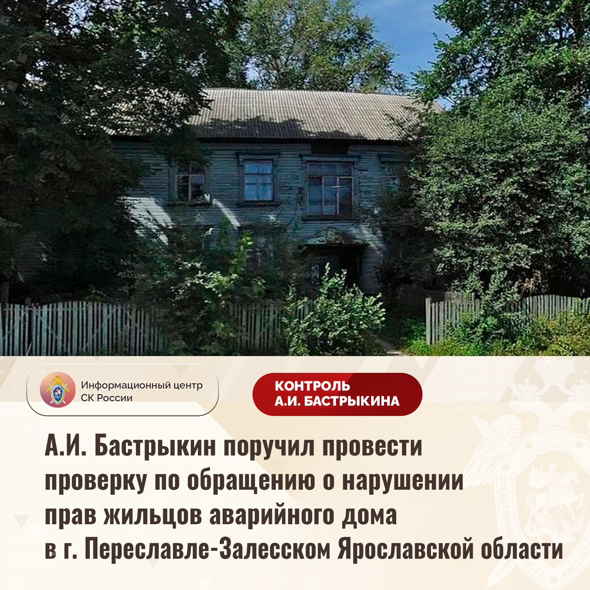 А.И. Бастрыкин поручил провести проверку по обращению о нарушении прав жильцов аварийного дома в г. Переславле-Залесском Ярославской области В Информационный центр СК России обратилась жительница Ярославской области. Она сообщила, что многоквартирный дом, 1936 года постройки, на улице Московской в городе Переславле-Залесском находится в непригодном для проживания состоянии: в несущих стенах образовались трещины, кровельное покрытие и отопительные печи частично разрушены, коммуникационные системы не функционируют. В 2016 году строение признано аварийным, однако несмотря на наличие вступившего в законную силу судебного решения, до настоящего времени благоустроенное жилье гражданам не предоставлено. Многочисленные обращения жильцов результатов не принесли. Председатель Следственного комитета Российской Федерации Александр Иванович Бастрыкин поручил руководителю СУ СК России по Ярославской области Александру Александровичу Бессмельцеву провести процессуальную проверку и представить доклад
