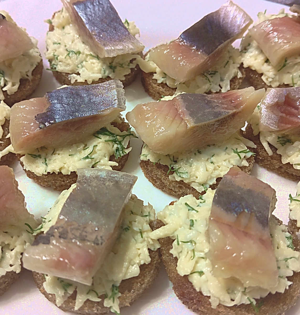 Добрый день! Предлагаю Вашему вниманию рецепт бутербродов с селёдкой. Ингредиенты: - Хлеб ржаной - 5_6 кусочков, - Яйца - 1 шт., - Сыр твёрдый - 50_70 гр., - Сельдь солёная(филе) - 1 шт., - Чеснок - 2-3 зубчика, - Зелень(укроп) - несколько веточек. Приготовление: 1. Вырезаем из хлеба круглой формой для печенья кусочки диаметром 5-6 см. И обжариваем их на растительном масле с двух сторон. 2. Яйцо отвариваем, очищаем и натираем на мелкой тёрке. 3. Сыр трём также на мелкой тёрке и добавляем к яйцу. 4. Выдавливаем туда чеснок и добавляем мелко порезанную зелень. 5. Немного солим, заправляем майонезом и хорошо перемешиваем. 6. Намазываем на хлеб и сверху кладём кусочек селёдки. Приятного аппетита!!!