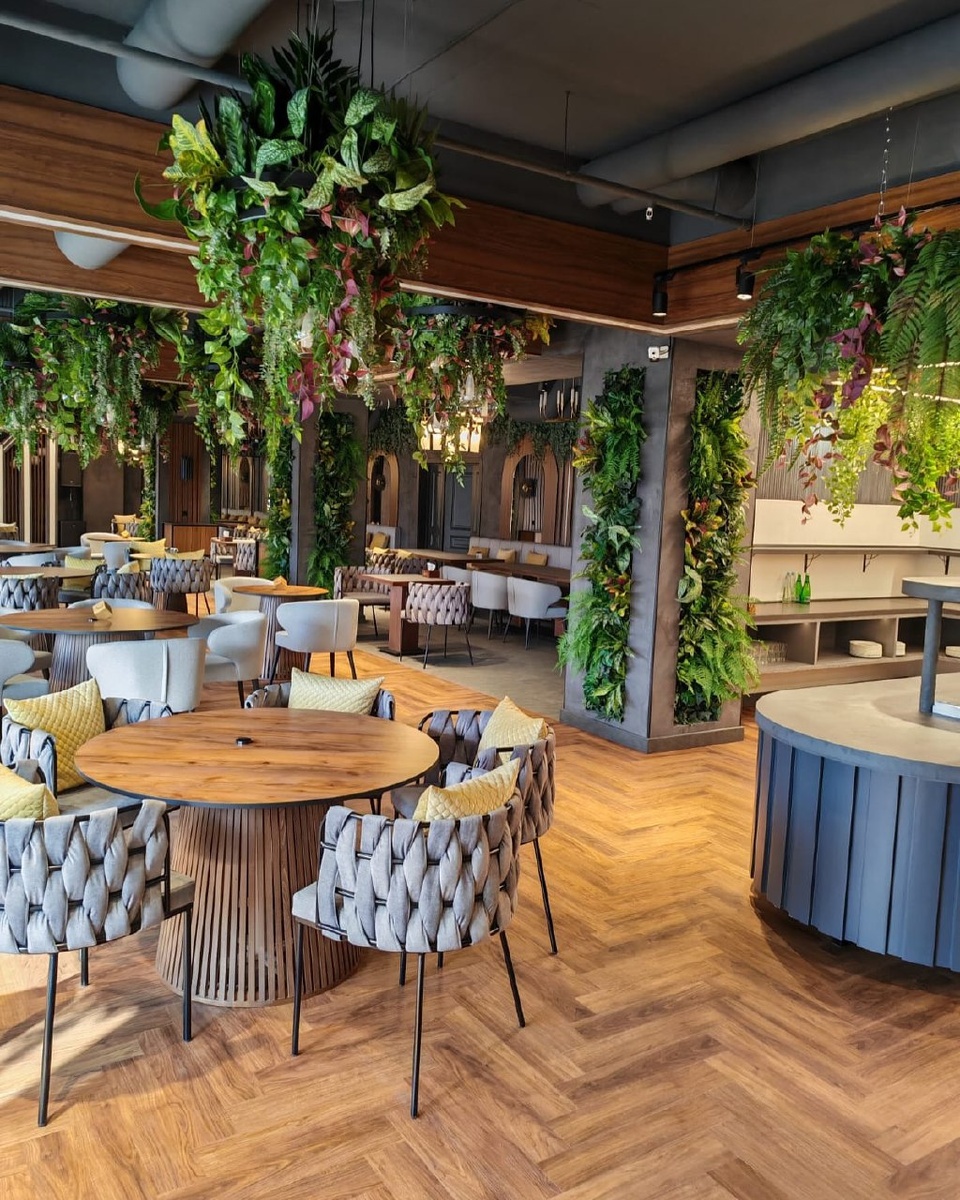 Растения создают атмосферу, которая привлекает внимание. Фитостены, зелёные композиции и декоративные деревья станут фишкой вашего заведения, которую посетители точно захотят сфотографировать и поделиться в соцсетях.
