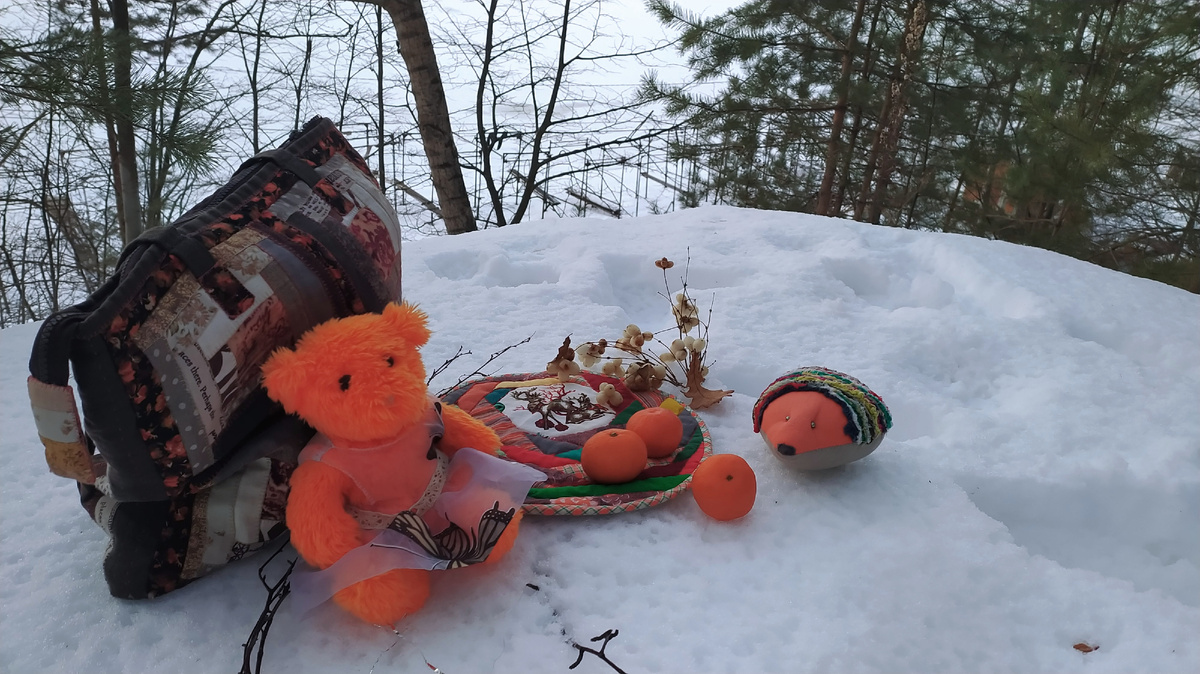 Пока я отвлекалась на прекрасные виды и угощения (Новый год же, как без пикника!) мой льняной ëжик убежал.