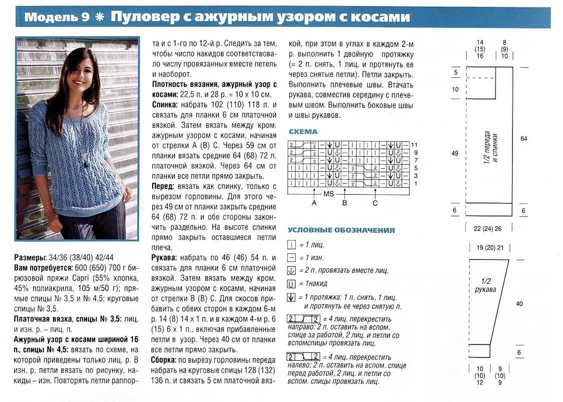 3 Джемпер спицами с оригинальными регланными линиями из жгутов.
