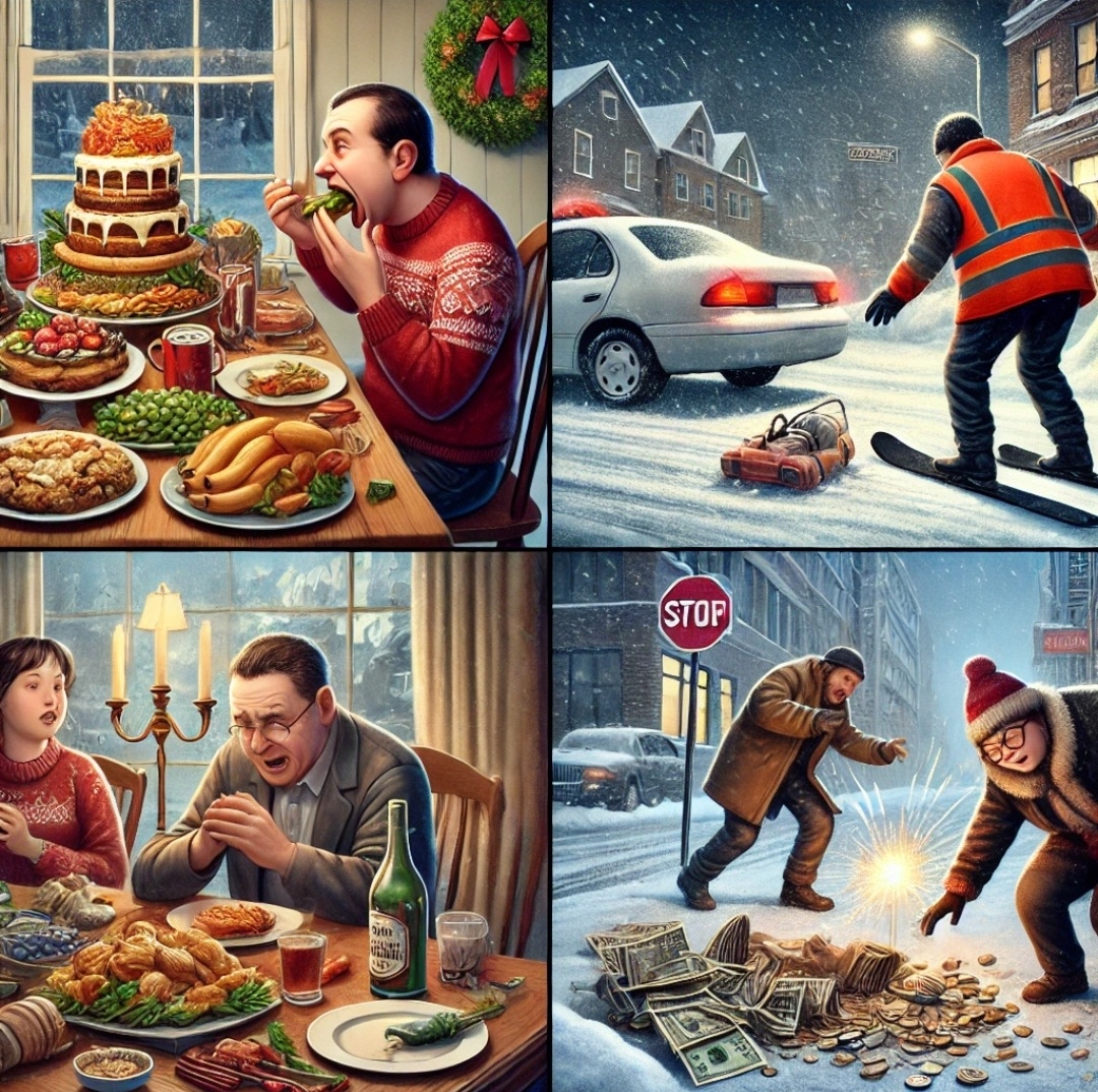 Новогодние каникулы — это не только салаты, мандарины и запах хвои, но и тонкий лёд, на котором легко поскользнуться, причём как в прямом, так и в переносном смысле. Вот пять главных опасностей, которые могут превратить праздники в испытание на прочность. 1. "Оливье до упаду" или атака на ваш желудок Кажется, что после боёв курантов бой объявлен вашему организму. Килограммы майонеза, тосты за всё на свете и литры шампанского — и вот вы уже страдаете от тяжести в животе и утреннего похмелья. Почему опасно: Риск переедания и обезвоживания может привести к серьёзным проблемам — от гастрита до алкогольной интоксикации. Что делать: Оставьте немного оливье в холодильнике и ешьте медленно. Пейте воду между бокалами, чтобы утром не пришлось гуглить "как выжить после праздника". 2. Зимний спорт или как улететь на санках в травмпункт Горки, лыжи, каток — всё это прекрасно, пока вы не решаете побить олимпийский рекорд в скорости. А ещё лёд на улицах, который превращает каждую прогулку в и