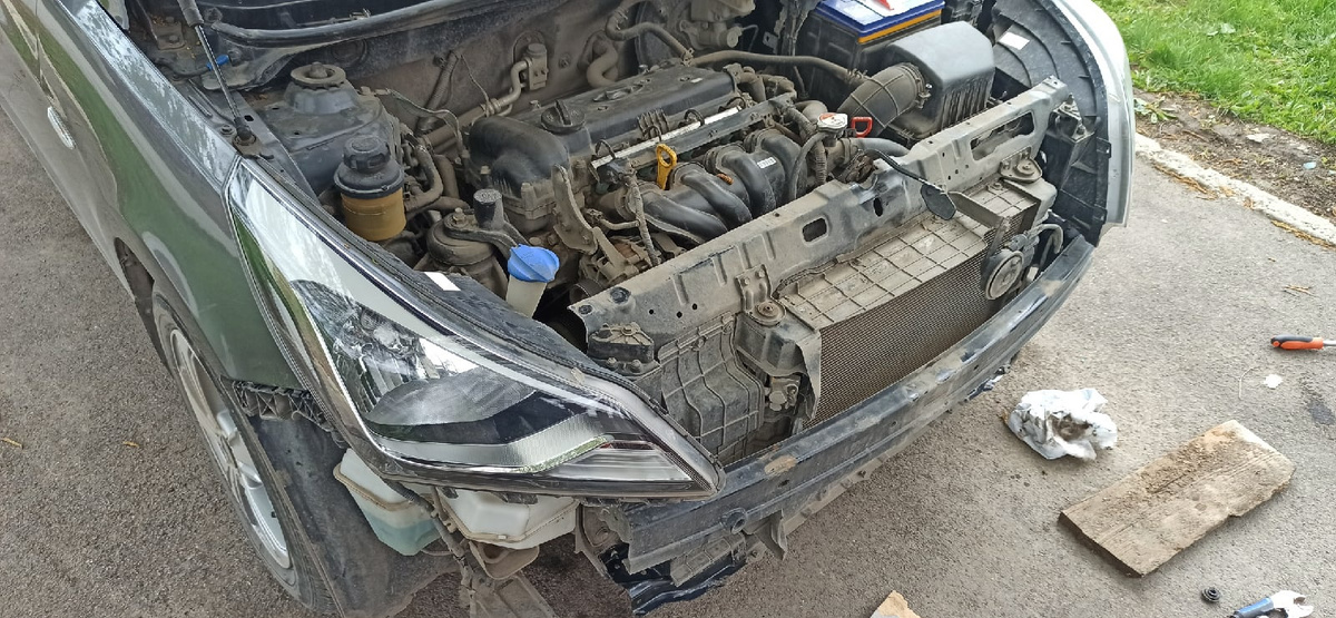 Для снятия железной защиты двигателя на Hyundai Solaris выполните следующие шаги: