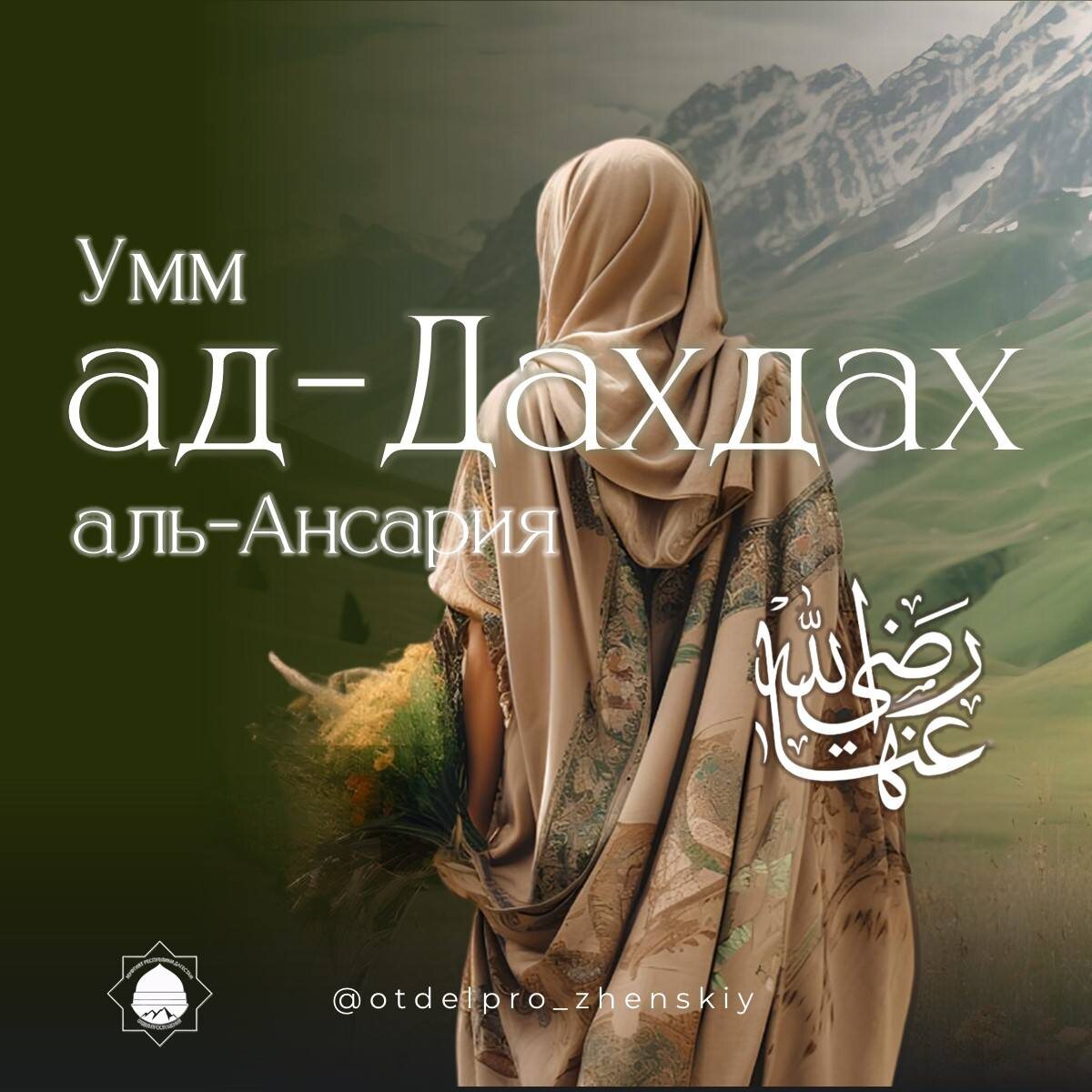 #великиеженщиныИслама Умм ад-Дахдах аль-Ансария. Она была одной из женщин-ансаров. Умм ад-Дахдах являлась также сподвижницей Посланника Аллагьа ﷺ, которая сыграла огромную роль в истории ислама, но при этом никогда не кичилась этим, потому что была скромной женщиной. Умм ад-Дахдах и ее муж были среди тех, чьи души были озарены светом Священного Корана. У Абу ад-Дахды была земля, обильная водой и богатая плодами. Умм ад-Дахдах помогала супругу в совершении добрых дел. Что делать женщине, получившей известие о смерти любимого мужа? Когда весть о мученической кончине Абу ад-Дахды дошла до его жены Умм ад-Дахды, она не ударила себя, не порвала платье и не обсыпала голову землей. Она покорилась Всевышнему, потому что знала, что Абу ад-Дахдах снискал великую честь. Она являлась одной из героинь своего времени, которые распространяли благонравие. Умм ад-Дахдах оставила после себя самые прекрасные образы щедрости и самые чудесные примеры терпения. Пусть Аллагь будет доволен Умм ад-Дахдах