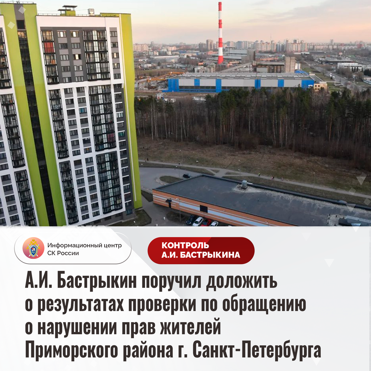 А.И. Бастрыкин поручил доложить о результатах проверки по обращению о нарушении прав жителей Приморского района г. Санкт-Петербурга