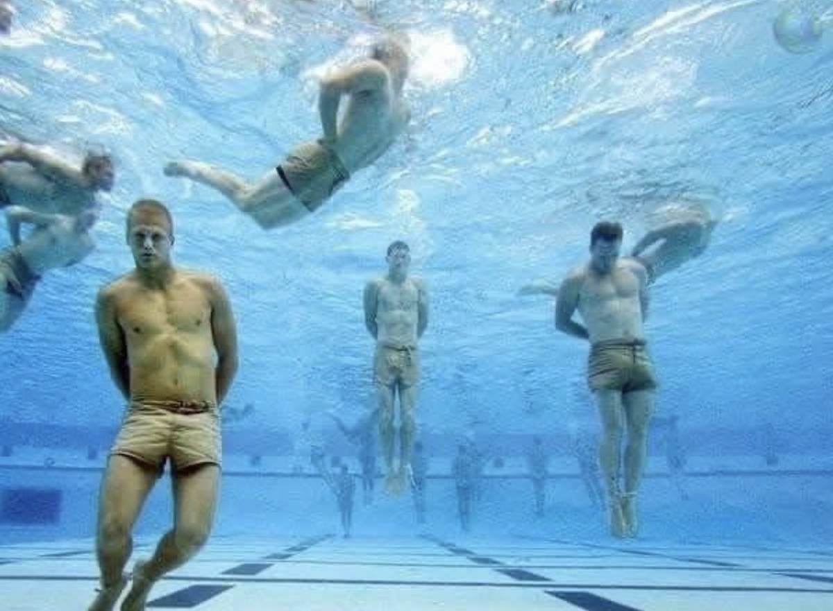 У «морских котиков» ВМС США существует специальное упражнение: человеку связывают руки за спиной, связывают лодыжки и бросают его в бассейн глубиной 3 метра.