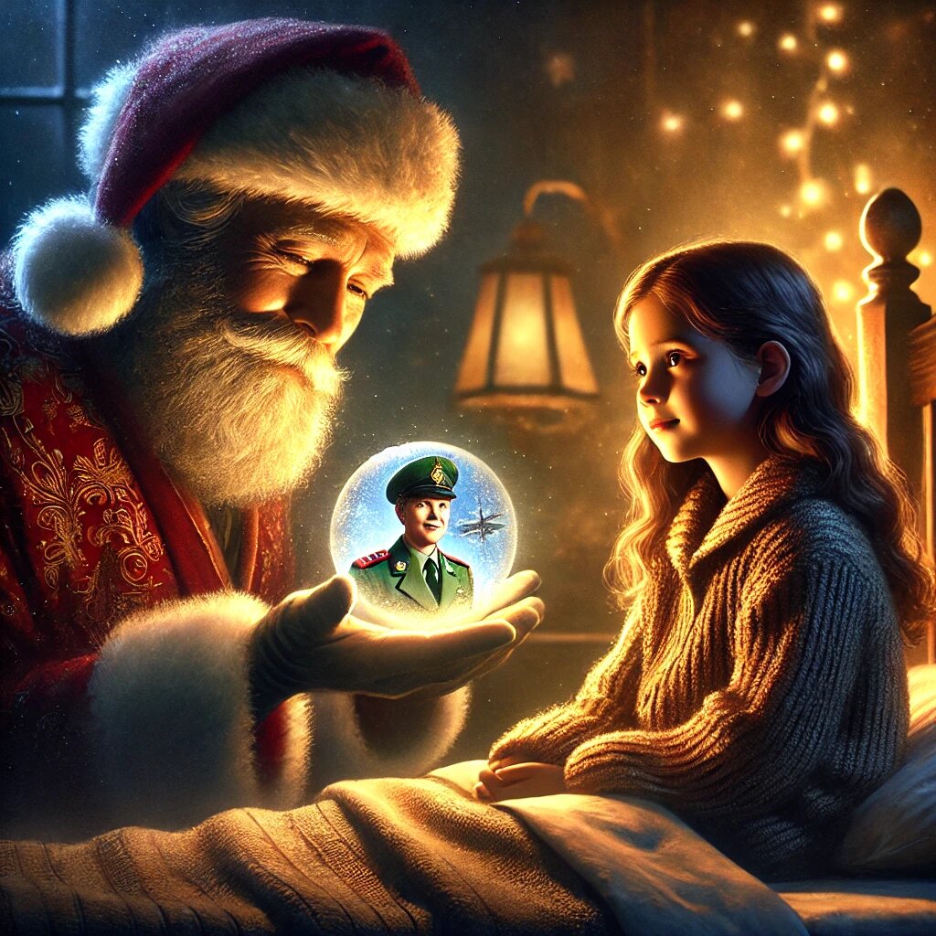 В маленьком городке, покрытом снежным одеялом, стоял уютный домик с окнами, украшенными сверкающими снежинками. Там жила девочка по имени Соня. У Сони были длинные русые волосы и большие карие глаза, которые светились добротой. Но в эти дни в её взгляде отражалась грусть. Соня любила Новый год. Она вспоминала, как они с мамой украшали ёлку, пекли имбирные пряники и пели праздничные песни. Но в этом году всё было по-другому. Её мама, врач, была далеко — на фронте, где помогала раненым солдатам. Папа старался сделать всё, чтобы праздник был волшебным: он поставил ёлку, развесил гирлянды, приготовил ужин. Но Соня всё равно чувствовала пустоту. Она сидела у окна, наблюдая за падающим снегом, и тихонько вздыхала. — Почему мама не приехала к нам на праздник? — спросила она у папы. Папа присел рядом, обнял её и мягко сказал: — Сонечка, мама сейчас спасает жизни. Она помогает тем, кто в этом нуждается. Она настоящий герой. Соня кивнула, но сердечко всё равно болело. *** Тем временем на Севе