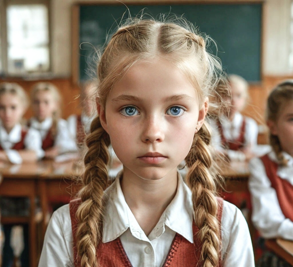 Томочка увидела девочку, которая жила в их новом доме в первом подъезде. Они сестрой ходили к ней, что бы подружиться ,а она обозвала из глазастыми и захлопнула дверь. Томочка робко пошла между партами. Девочка похлопала по соседнему стулу и смешливо сказала,