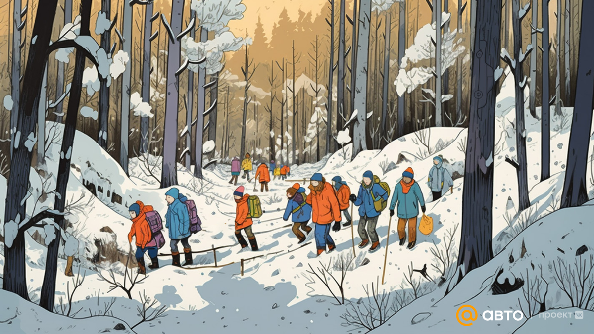 Зимний лес прекрасен. Стоящие среди сугробов ели, укутанные в пушистые белые шубы, словно сказочные персонажи. Деревья и кусты, припорошенные снегом, будто только что играли в «Море волнуется раз…» и вдруг замерли в причудливых позах. Грех не воспользоваться погожим солнечным деньком и не отправиться на прогулку, чтобы полюбоваться всей этой красотой. Примерно так и поступила большая группа туристов, изображенных на этой картинке. Устав от безделья на новогодних каникулах, сопровождающегося поеданием оливье и селедки под шубой, эти энтузиасты разбрелись по лесу. Кто-то любуется сверкающим в солнечных лучах снежком на ветках, а также разглядывает под кустами следы диких животных, а кто-то подыскивает подходящее место для привала и мангала. Вот только никто из них не замечает присутствия тут автомобиля. Где же он притаился? Только самые внимательные сразу увидят машину на картинке. Попробуйте разглядеть ее и вы. Если сможете обнаружить авто в лесу менее чем за полминуты — вы заслужили по