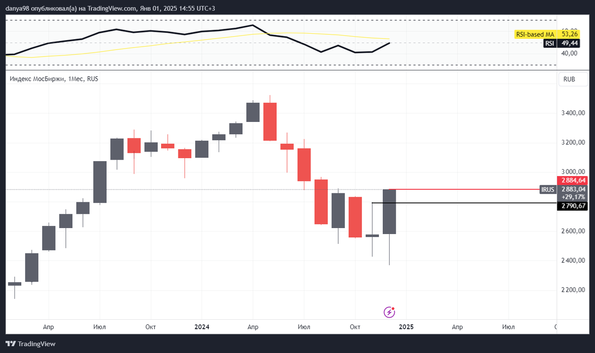 🎄 Поздравляю всех с началом 2025 года! Надеюсь, что вы начали его продуктивно, с постановок целей на год, занятий спортом или проведения времени с семьей и родственниками! В этом году торговых сессий на новогодних праздниках всего три (3, 6 и 8 января), поэтому можно по-настоящему расслабиться и отдохнуть от эмоционального напряжения последних месяцев. Тем не менее, необходимо держать в голове план действий, если на рынке за это время появятся какие-то возможности. В этом посте сделаю небольшое обновление своего виденья по рынку, которое описывал 23 декабря. С того момента у нас произошел стремительный рост, поэтому есть смысл скорректировать первоначальный план! — Пока все идет по первоначально описанному плану. Мы видим продолжение восходящей динамики на низколиквидном рынке. Безусловно, я ожидал более скромного растущего движения, однако, раз рынок дает возможности, ими надо пользоваться. Как писал ранее, этот период необходимо по максимуму использовать для сокращения плечей и выхо
