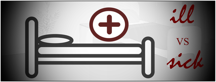 Прилагательные sick и ill стали разделять оттенки своих значений после того как последнее из них пришло в английский язык из древнескандинавского языка. За sick остались тошнота и головокружение или легкое недомогание (кашель, простуда и т.п.) Прилагательное ill стало обозначать серьезные и длительные заболевания. Между тем американский вариант допускает здесь также и использование sick. Сравните, например, следующие предложения.