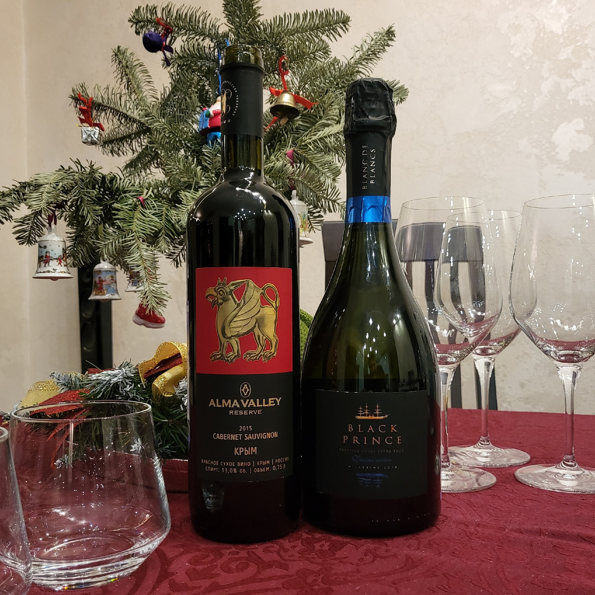 ВСЕХ С НОВЫМ ГОДОМ! Вот и наступил новый, 2025 винный год - год новых, ранее не открытых бутылок, новых имён на винных полках, новых винтажей и новых вин, которые ещё только поступят в продажу, новых винных баров, винотек и виноделен в которых еще не бывал и конечно же год нового урожая, который оценить можно будет только в конце года. И этот Новый винный год я встречал дома, с двумя бутылками из Крыма. Получилось даже немного символично - в 2024-ом году мы отметили десятилетнюю годовщину возвращения Крыма в состав России и возможно поэтому именно крымские вина оказались на моём новогоднем столе. И это: Black Prince Blanc de Blancs 2018 от «Золотой Балки» и Reserve Cabernet Sauvignon 2015 от Alma Valley Под бой Курантов и обращение нашего президента было открыто Российское шампанское выдержанное экстра брют белое Black Prince Blanc de Blancs 2018 Сортовой состав 100% шардоне, выдержка на осадке 48 месяцев В первые минуты меня ждало сильнейшее разочарование. Как так!? Что за пустот