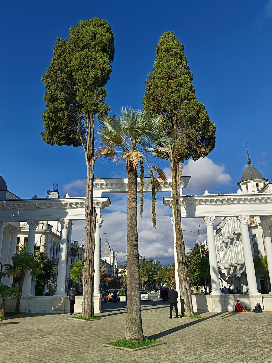 Первый день нового 2025 года: республика Абхазия, солнечный и даже немного радужный (в хорошем смысле этого слова) Сухум. Синее Чёрное море, не менее синее небо над высокими горами, красивые облака, тонко намекающие, что на дворе всё-таки январь и какие-никакие осадки теоритически возможны. И великолепная, сочная и вечнозеленая кавказская природа, поражающая высотой и мощью местных пальм, платанов и кипарисов. В общем, как по мне - самое правильное и самое лучшее начало очередного календарного 365-дневного цикла. И отличная возможность немного отдохнуть от долгой и нудной среднерусской зимы. :)