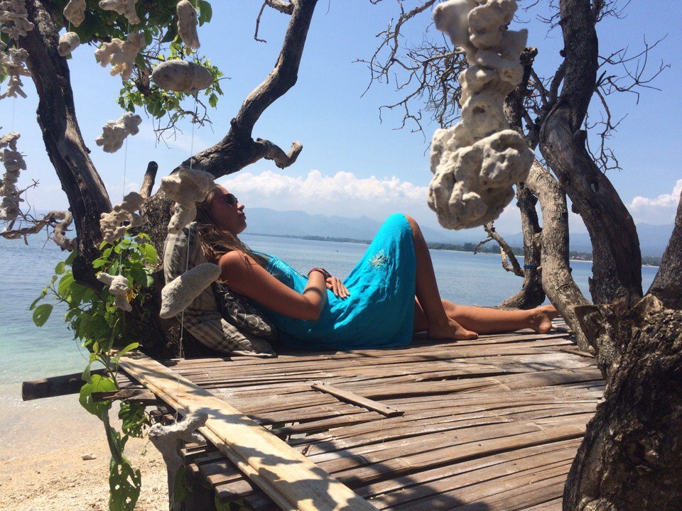 Есть такой малюсенький островок, самый дальний из трёх островов Гили (Траванган, Мено и Эйр) от попсового Бали, под названием Гили Эйр. Траванган - для тех, кто любит тусы и движ, Мено - для семейных туристов, а Гили - для людей любящих коралы и спокойствие. Так как он самый удалённый от Бали до него реже доплывают, поэтому и туристов поменьше. Из-за этого я его и выбрала. Чем заняться в раю? Ну все как обычно, целыми днями валяться на пляжу или в тени пальм и других деревьев, читать умные книжки или просто слушать колокольчики проезжающих по дорожке вокруг острова повозок с лошадьми. Так же можно выбрать себе кафешку на берегу (по вкусу и кошельку цены начинаются от 25000 за завтрак и до 60000) и залипнуть там. Можно наблюдать закаты и рассветы, здесь они божественные и просто наслаждаться тишиной)