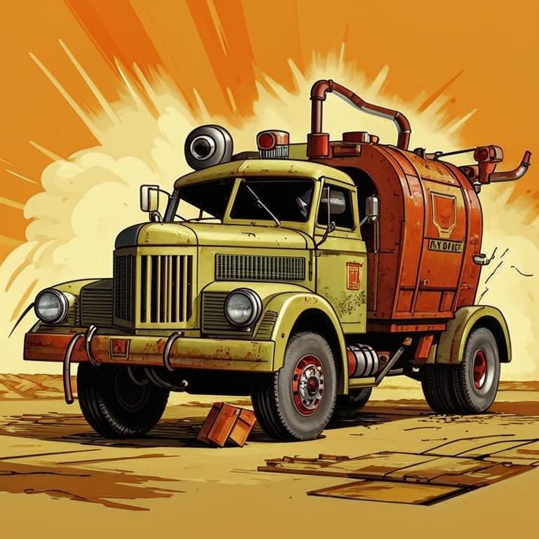 Пронзительный вой приближающейся кометы прорезал ночную тишину над городом N. Местные жители, привыкшие к постоянному шуму, лишь недовольно поморщились во сне. Но это был не метеорит, и не самолет. Это был Оптимус Прайм, лидер автоботов, совершивший аварийную посадку прямо на задворках местного водоканала. Удар был сильным, но броня выдержала. Искореженный отсек приземлился на заросшее травой поле среди труб и цистерн. Оптимус, с трудом придя в себя, просканировал местность. Деревья, покосившиеся заборы, баки с чем-то подозрительно пахнущим – все это не походило на просторы Кибертрона. Его миссия, конечно, была важнее ночных пейзажей, но сейчас ему требовалась маскировка, чтобы не привлекать лишнего внимания. Его взгляд зацепился за грузную желтую машину. Это был автопогрузчик-ассенизатор, или, как его называли местные работяги, "говновоз". Скрипя и дергаясь, Оптимус начал сканирование. Система самомаскировки работала на пределе, преобразуя его мощную броню в нелепые панели, шланги