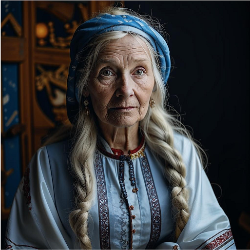 Первой вошла Арменуи со своим избранником, они подошли к Карне. Карна, несмотря на свой более чем почтенный возраст, а ей было около тысячи лет, выглядела очень хорошо. Распущенные длинные волосы до самой земли ниспадали серебристой волной, покрывая всё тело, одетое в старинный сарафан синего цвета и белой кофты, вся одежда была расшита рунами. На голове надето очелье с древними узорами и необычным плетением. Внимательно посмотрела на них, на одного, потом на другого, и произнесла такие слова: «Вы действительно половинка единого целого, и от вас пойдет большой народ, который будет владеть землями на юге, около высоких гор.