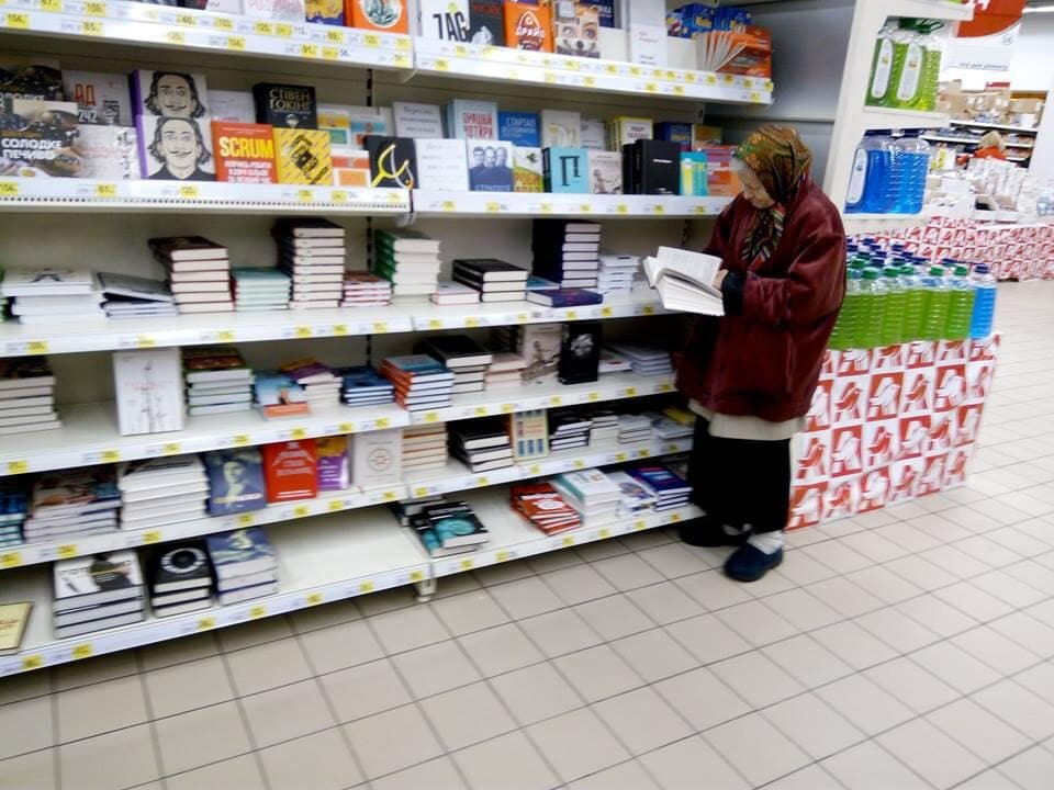 Пожилая женщина на протяжении 15 лет приходит в супермаркет читать книги. Ее муж умер а двое детей не помогают и единственной радостью которая осталась у женщины остались книги. Из за копеечной пенсии у ней нет возможности покупать книги поэтому она читает их стоя. Администрация магазина сжалилась над пенсионеркой и поставила ей скамейку где она теперь может сидя читать любимые книги. Очень жаль что таких неравнодушных людей сейчас очень мало. Вы как считаете?