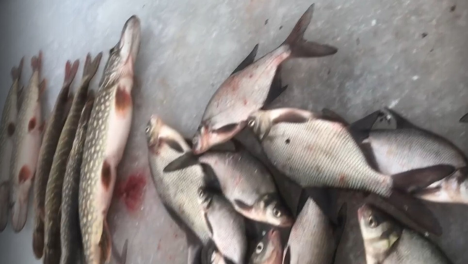 На озере Мстино в Вышневолоцком округе Тверской области, в районе деревни Валентиновка, в канун нового года рыбак наловил целую гору лещей и щук.