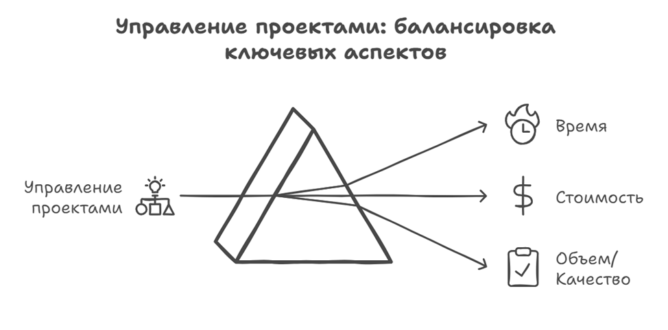 - Баланс между временем, стоимостью и объемом требует ясного определения приоритетов.