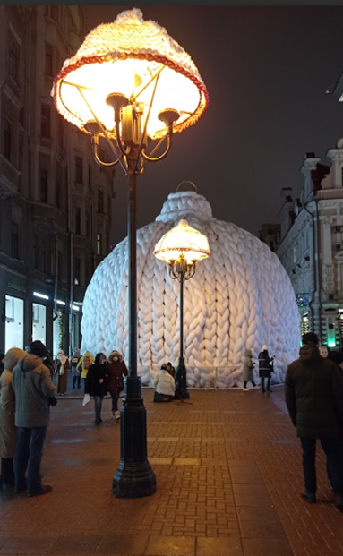 Я так люблю бродить по городу! Пусть это дождь или снег. Но, особенно прекрасно, когда это предновогодье! Тогда на улице можно встретить волшебника, деда Мороза. Тогда снова вериться в сказку. сам радуется, что его украсили! А если еще и с выдумкой и заботой! Тогда улыбашки встречных прохожих вам в подарок! Это всего одна улица. Сегодня прошла по старому Арбату. Как вы на это смотрите? Фонари в шапочках, вязаные шарики! Удивляешься, как ребенок! Обновление эмоций — это вторая молодость! Пожалуй, Новый год единственный праздник, в который взрослых многое удивляет, радостно удивляет! Восхищенно оглядываешься и показываешь пальцем (пусть это и неприлично) то на лево, то на право! Присмотритесь к своему городу. Наверняка это так же! Собираем эмоции их не купить, а это и лекари, и антиоксиданты! Для гармонизации приятной волны восхищения внутри, зайдем в кафешку. Там особый уют. Там горячий кофе и печенька с корицей. Можно назначить «кафешкой» свою квартиру и дом. Заранее все приготовить.