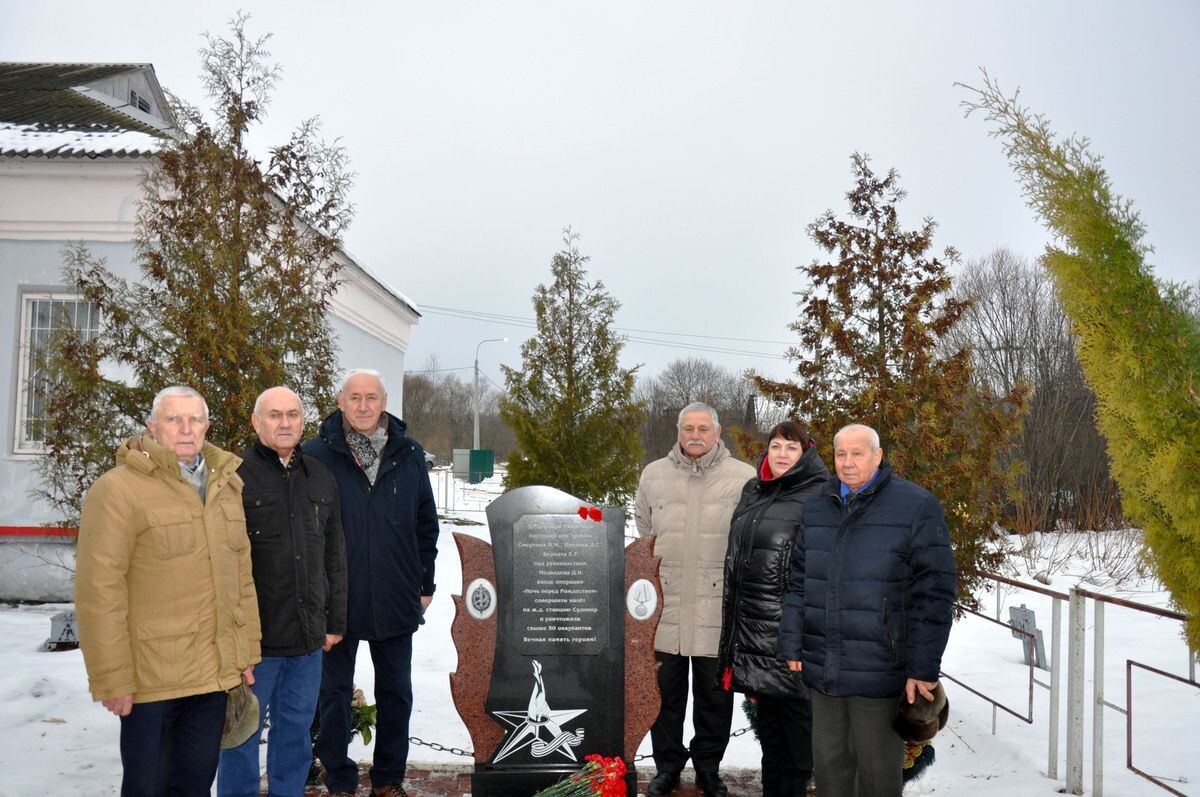 В канун годовщины операции «Ночь перед Рождеством», проведенной под руководством Героя Советского Союза Дмитрия Медведева, сотрудники и ветераны Управления ФСБ России по Брянской области возложили цветы к памятнику партизанским группам на станции Судимир Калужской области. Заведующая музеем имени Дмитрия Медведева Нина Шик выступила с кратким рассказом о мужестве и самоотверженности воинов-чекистов. Тогда чекисты сорвали планы немецко-фашистских захватчиков по наступлению на Москву. Участники мероприятия почтили память погибших минутой молчания. Митинг стал данью памяти и глубокого уважения к мужеству и самоотверженности партизан, сражавшихся за свободу Родины. Напомним, что в ходе операции «Ночь перед Рождеством» советские партизаны разгромили вражеские эшелоны в предрождественскую ночь 1941 года. В ночь с 24 на 25 декабря 1941 года партизанские отряды Людиновского района сорвали переброску под Москву немецких войск и техники. 21 декабря в деревне Волынь состоялось совещание, на кото