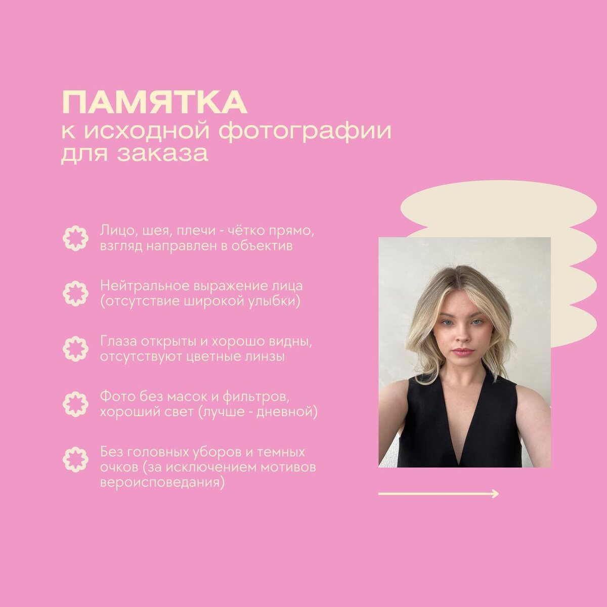 Сегодня поговорим о том, можно ли сделать фото на паспорт из селфи. Знаете, как иногда бывает: нужно срочно обновить паспорт, а времени на фотосессию в салоне или копицентре у дома нет. Так вот, у нас есть отличная новость! Согласно регламенту, который регулирует требования к фотографиям на документы, нет строгого запрета на использование селфи для паспорта. Это значит, что Вы можете сделать фото прямо у себя дома! Удобно, правда? 😍 Экономия времени: Не нужно тратить время на поездки в фотостудию. Просто возьмите телефон, выберите подходящее освещение и сделайте несколько снимков. Комфорт: Вы в своей уютной обстановке, можете выбрать любимый наряд и не переживать о том, как выглядите перед чужими людьми. Освещение: Лучше всего делать фото при естественном свете. Откройте шторы и встаньте лицом к окну. Фон: Не важен, главное, чтобы Ваше лицо было хорошо видно. Угол: Держите телефон на уровне глаз и смотрите прямо в камеру. Не забывайте, что на фото должно быть видно Ваше лицо и плечи.