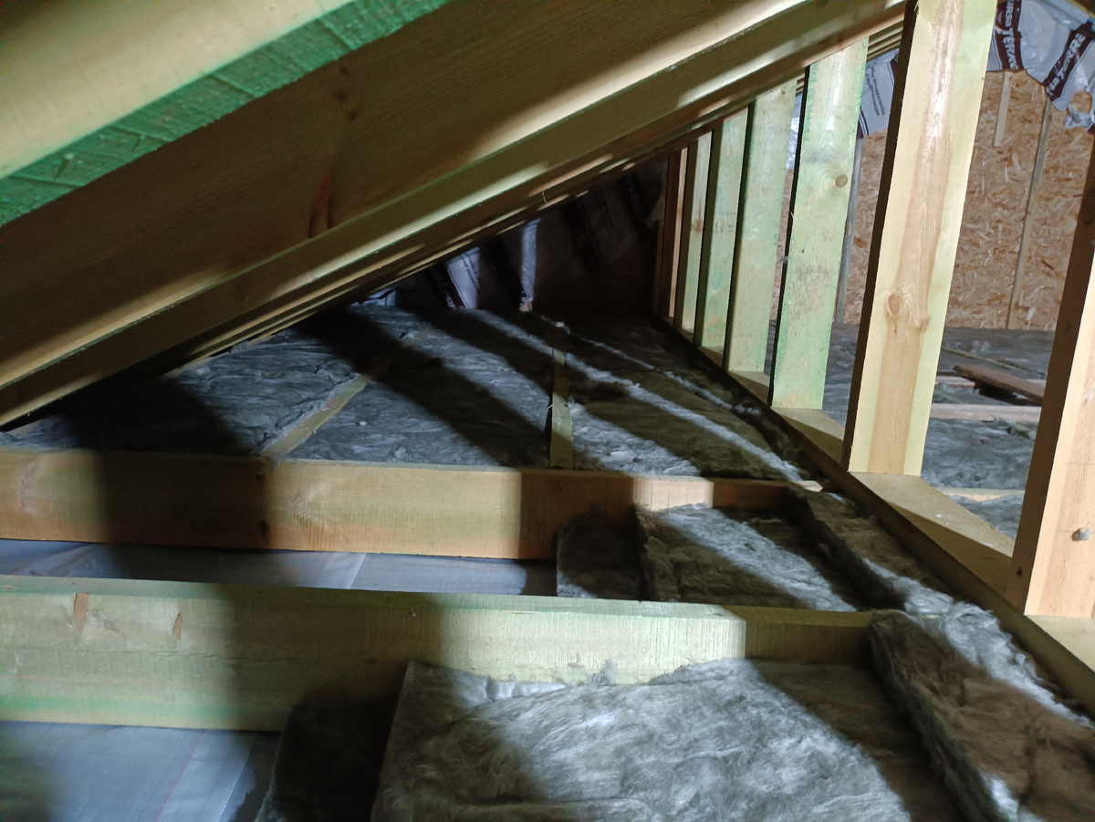 Утепление внешних стен предварительно закончено. Настала пора утеплять верхнее перекрытие для минимизации тепловых потерь. Эх, как вспомнишь, так вздрогнешь, сколько же предстоит утеплить, а это ни много ни мало 108 м², за вычетом 13 м², которые были утеплены весной. Ох уж мои колени. 🤦♂️ Много писать не о чем. Работа такая же однотипная и кропотливая: замерять, резать и укладывать. Прилагаю несколько фото.