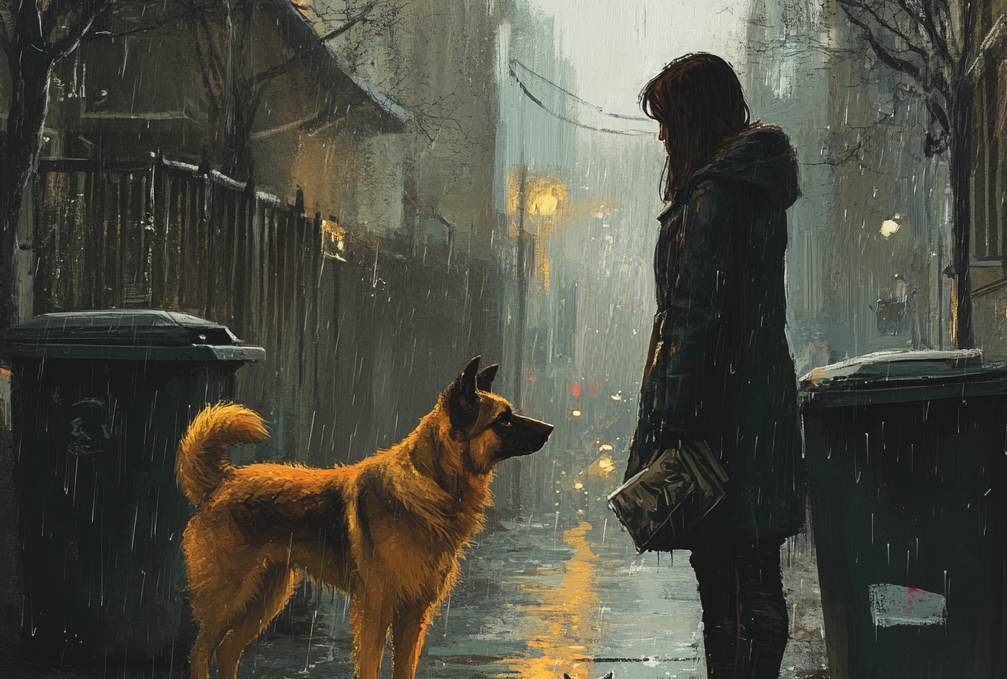 Она заметила его у мусорных баков – худого, грязного пса с перебитой лапой. Его шерсть свалялась в колтуны, на боку виднелась засохшая корка грязи, но держался он с каким-то особенным достоинством.