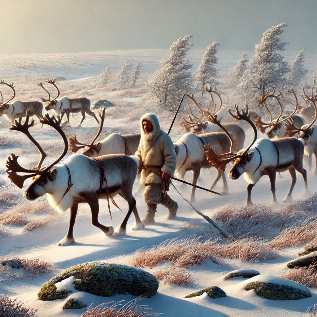 Жители тундры — это люди, чья жизнь неразрывно связана с суровыми условиями Крайнего Севера. Их быт, традиции и культура формировались веками под влиянием бескрайних снежных просторов, долгих зим и короткого лета. Основным занятием коренных народов тундры, таких как ненцы, чукчи, эвенки и другие, является оленеводство. Олень для них — не только источник пищи и тепла, но и символ свободы и единения с природой. Жилища тундровиков — чумы и яранги — легко разбираются и перевозятся, что позволяет кочевать вслед за стадами оленей. Одежда из оленьих шкур защищает от лютых морозов, а узоры на ней несут в себе глубокий сакральный смысл. Несмотря на современные технологии, многие жители тундры сохраняют традиционный уклад жизни, передавая знания и навыки из поколения в поколение. Их мир — это гармония с природой, уважение к предкам и умение находить красоту в суровости северной земли. Традиционные промыслы жителей тундры включают не только оленеводство, но и рыболовство, охоту на пушного зверя и