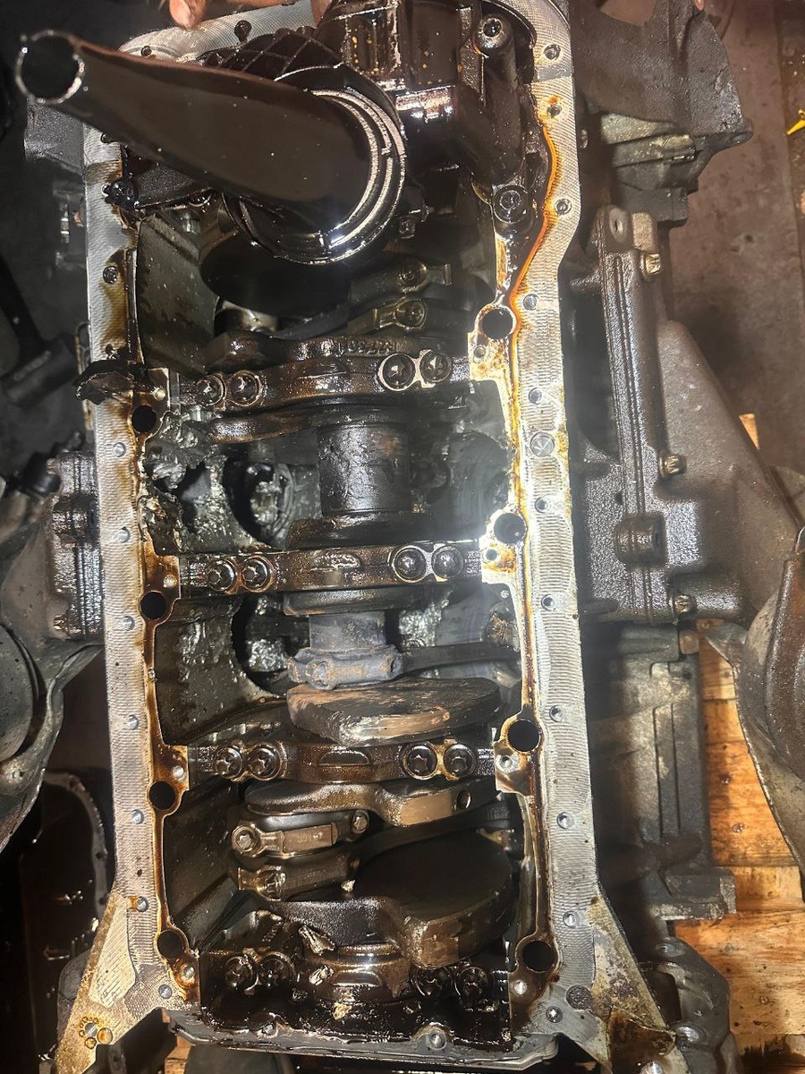 Итак перед нами "покойный" легендарный двигатель Mercedes-Benz m273.963. Который работал на GL W164 Так что же в нём такого легендарного? Наверное всё! От никасилового покрытия стенок цилиндров, которое разрушается от нашего топлива, в основном из за серы и марганца до отсутствующего датчика давления масла в двигателе. Но лучше по порядку конструктивно вроде как всё весьма неплохо. Восемь цилиндров, объем 5,5 литров. мощность 388 л.с. при 6000 оборотов в минуту. Диаметр цилиндра 98мм. С межцилиндровым расстоянием 106мм. Классический по современным меркам алюминиевый блок, цепной двурядный привод ГРМ, гидрокомпенсаторы и бесступенчатый механизм изменения фаз газораспределения. Вроде как всё очень даже прилично. Но что смущает. Практика ремонта показывает, что вроде как сам агрегат то и не виноват, но конструкторы из компании Mercedes подложили свинью. А именно: сервисная процедура по обслуживанию данного мотора предполагает замену цепи грм. Цепь грм согласно официальной сервисной инстр