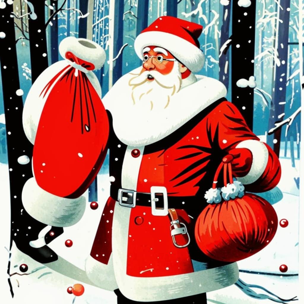Дед сквозь огромную белую бороду низким растянутым басом, почти трубно, ревёт, стучит серебряным посохом по снежному насту и строго спрашивает - слушались ли дети весь год? Те честно отвечают "ну, не всегда...", а чуть в более старшем периоде заменяют на "so-so". Читают стихи, слушают наставления и тащат мешки с подарками в дом, еле пробиваясь сквозь снег своими маленькими валенками.