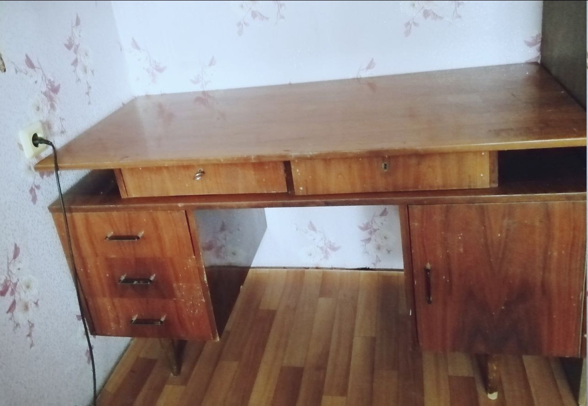 Школьный, письменный стол советского качества тоже решила заменить на новый, компьютерный. Разместила, объявление в группу «Отдам бесплатно», и выставила его на лестничную площадку.