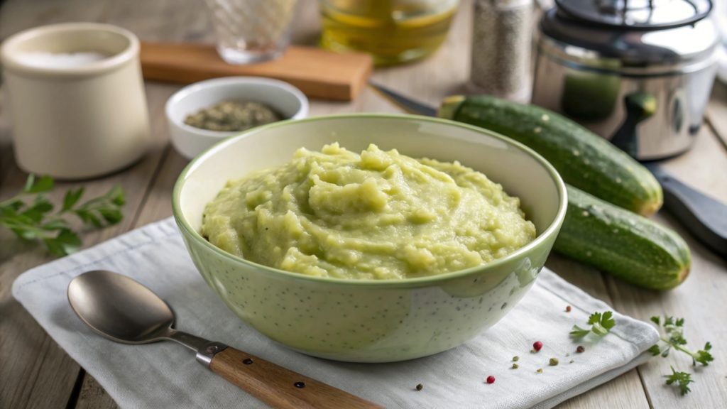 Кабачок — это один из самых нежных и популярных овощей для первого прикорма. Его мягкая текстура и нейтральный вкус делают его идеальным выбором для малышей. Приготовленный кабачок легко усваивается и богат витаминами, что делает его отличным стартом для введения новых продуктов в рацион вашего крохи. Тщательно промойте кабачок под проточной водой. Убедитесь, что на нем нет загрязнений или остатков пестицидов. С помощью кухонного ножа нарежьте кабачок на небольшие кубики. Это позволит ему быстрее приготовиться. Выложите кусочки кабачка в кастрюлю, добавьте воду и доведите до кипения. Уменьшите огонь и варите кабачок в течение 15-20 минут до мягкости. После того как кабачок будет готов, слейте воду и с помощью блендера превратите его в пюре. Если пюре слишком густое, можно добавить немного отвара. Вы можете заменить кабачок на тыкву или сладкий картофель для разнообразия вкуса.При подаче добавьте немного оливкового масла для улучшения вкуса и усваиваемости витаминов.Храните оставшееся п