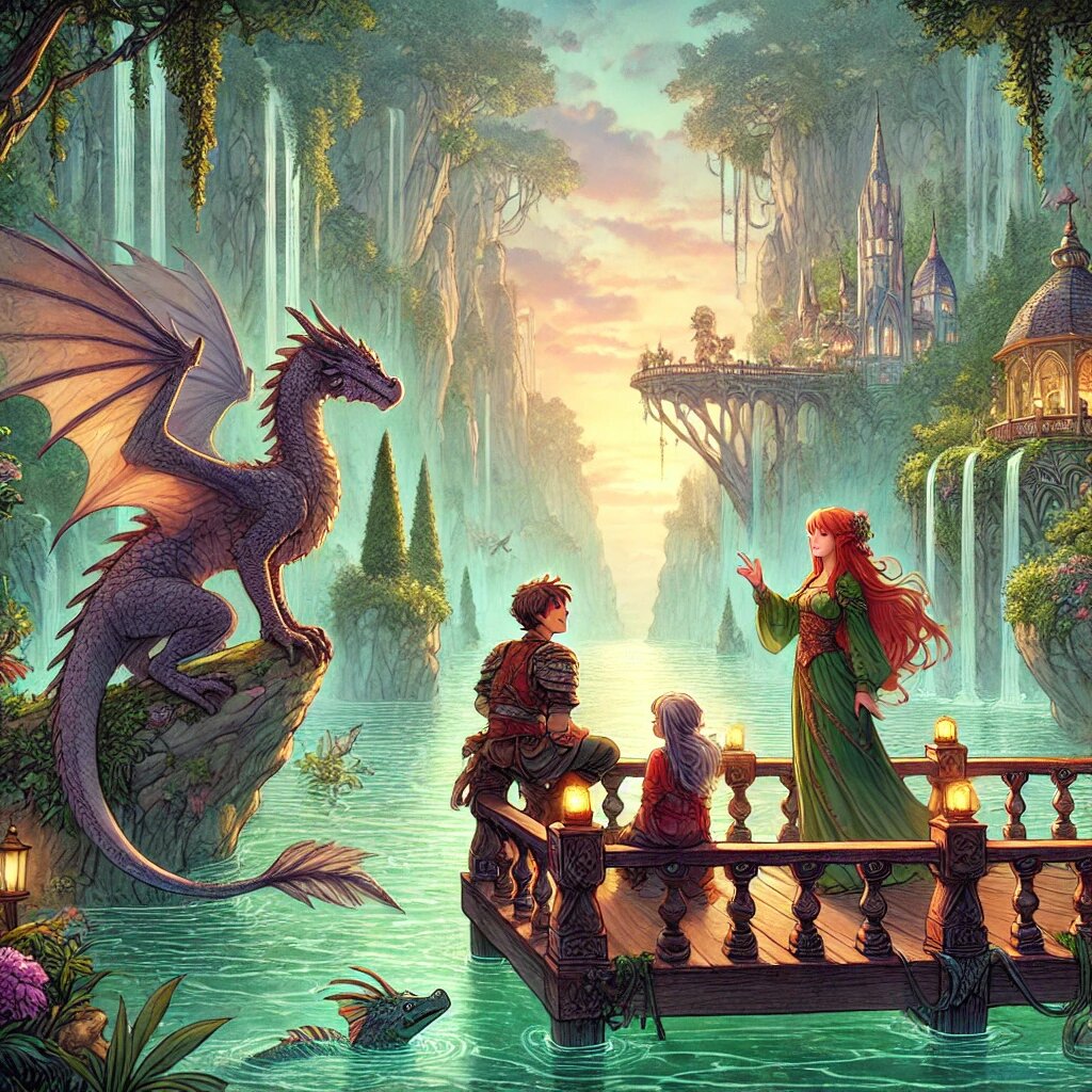За очередным поворотом нас ждал сюрприз. Огромное озеро, на берегах и дне которого располагался русалочий город. В Озёрном крае проживают не только русалки, хотя, справедливости ради, они тут в абсолютном большинстве. Но, скажем, гномы есть везде. И люди. Поэтому столица Озёрного края состояла из подводной и надводной частей. Вдоль берегов теснились навесы, которые были надводной частью домов, где жили русалки, и обычные дома, крытые тростником или черепицей. Чуть поодаль от озера виднелись чисто сухопутные районы. В середине озера под водой, по словам Велли, располагались общественные здания для русалочьего пользования. Магазины, кафе, школы и даже детские сады.