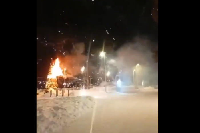 Городская елка сгорела в Лесном из-за криво пущенного салюта