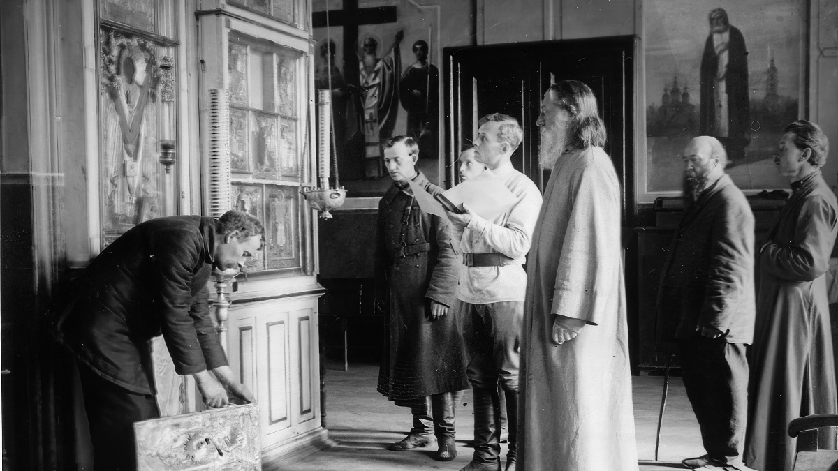 Революция, а затем Гражданская война перевернули жизнь России с ног на голову — в страну пришла эпоха перемен, потрясений и братоубийственной войны. Не удивительно, что для огромного числа жителей патриархальной России единственным сохранившимся островком прежней благополучной жизни стали храмы. Советская власть не могла не замечать того, что в лоно церкви потянулись люди, прежде в лояльности к ней не замеченные — главным образом пролетариат, единственная опора большевиков. Про крестьянство и речи не шло — они от церкви и не отдалялись. Опасность того, что под сенью крестов и икон будет вестись антибольшевистская пропаганда, оказалась настолько высока, что в 1921 году большевистские руководители прекратили личные распри и единым фронтом накинулись на церковь, дабы уничтожить последний оплот оппозиции в стране. Вообще-то, еще в начале 1918 года власть издала Указ об отделении Церкви от государства. Но отделить-то ее отделили, а больше делать ничего не стали, и РПЦ не только полностью со