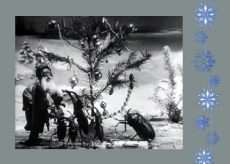 Наверное, это самое первое изображение Деда Мороза в отечественном кино. Дед Мороз здесь имеет свойство то быть традиционным волшебником, то превращаться в новогоднюю игрушку на елку. Вид у него несколько деревянный (имеет темную кожу, похожую на кору). А еще он мелкий - чуть выше жучков-паучков. Ведет себя эксцентрично, скорее напоминает старика Хоттабыча, раздающего чудеса направо и налево. Одним словом- чудак, без какого-либо намека на мудрость.