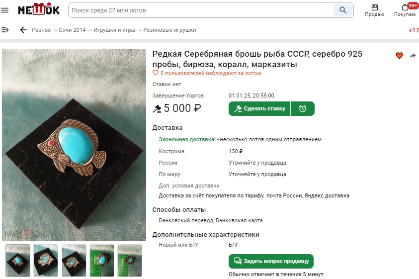 И еще непонятно, зачем брошь размещена в разделе "Резиновые игрушки"? На этой площадке неважно, что продал, игрушку или брошь, комиссия будет одинаковой, она зависит только от цены вещи.