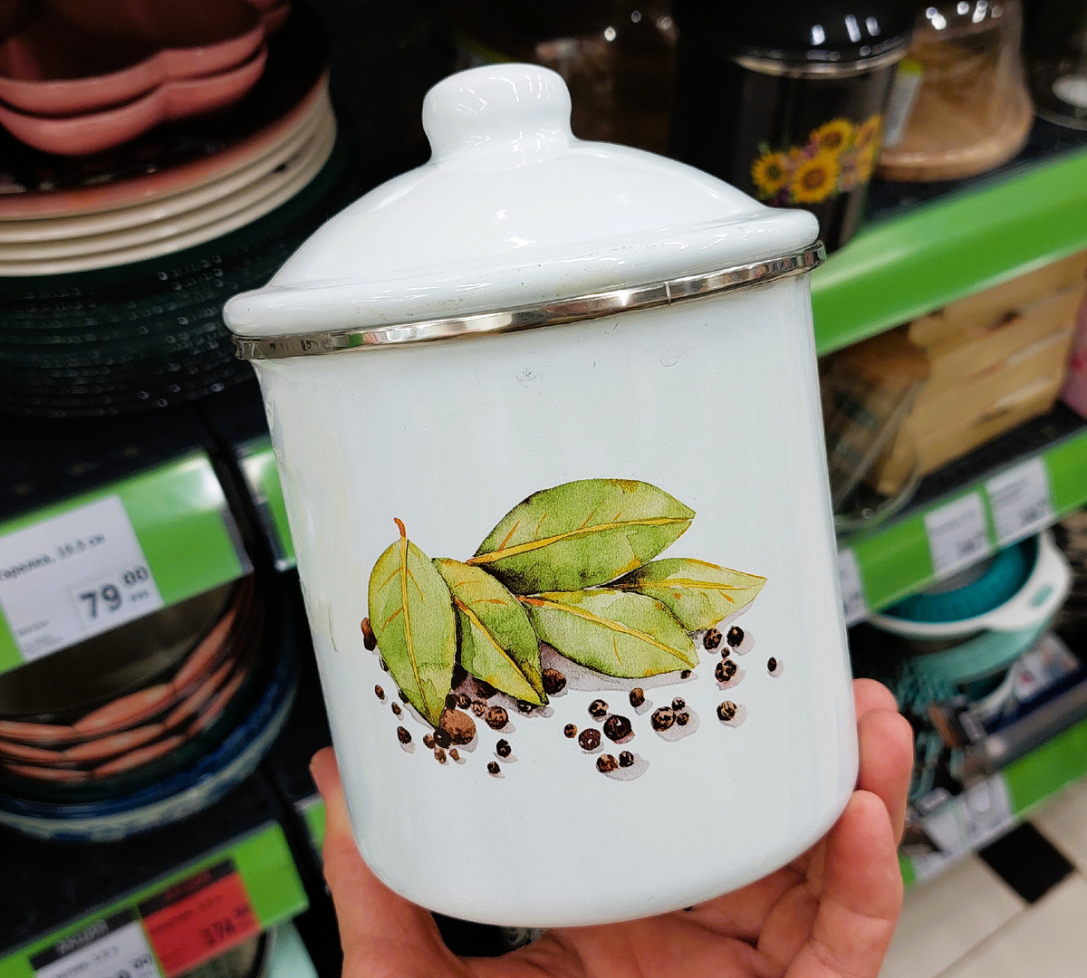 Эмалированная банка украшена изящным рисунком. Объём: 1,2 л. Состав: эмаль, нержавеющая сталь. Цена по карте ФП 196 руб.